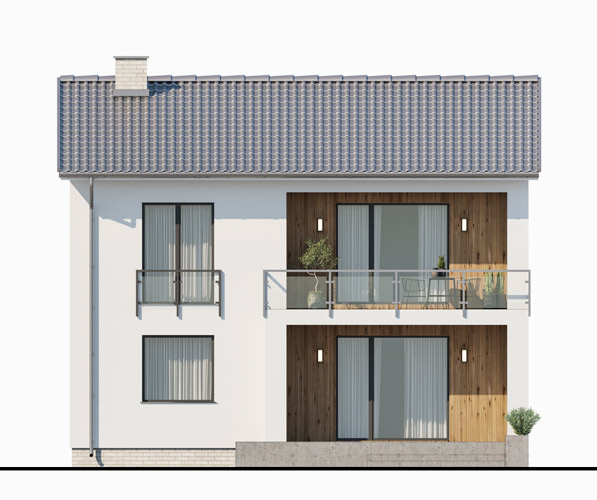 Проект двухэтажного дома с гаражом и балконом для узкого участка DUBLIN-A